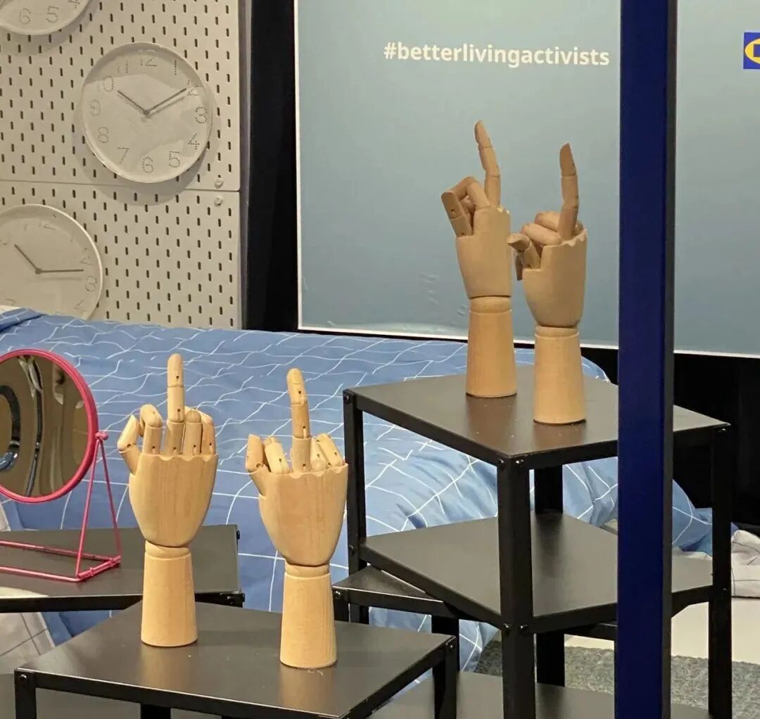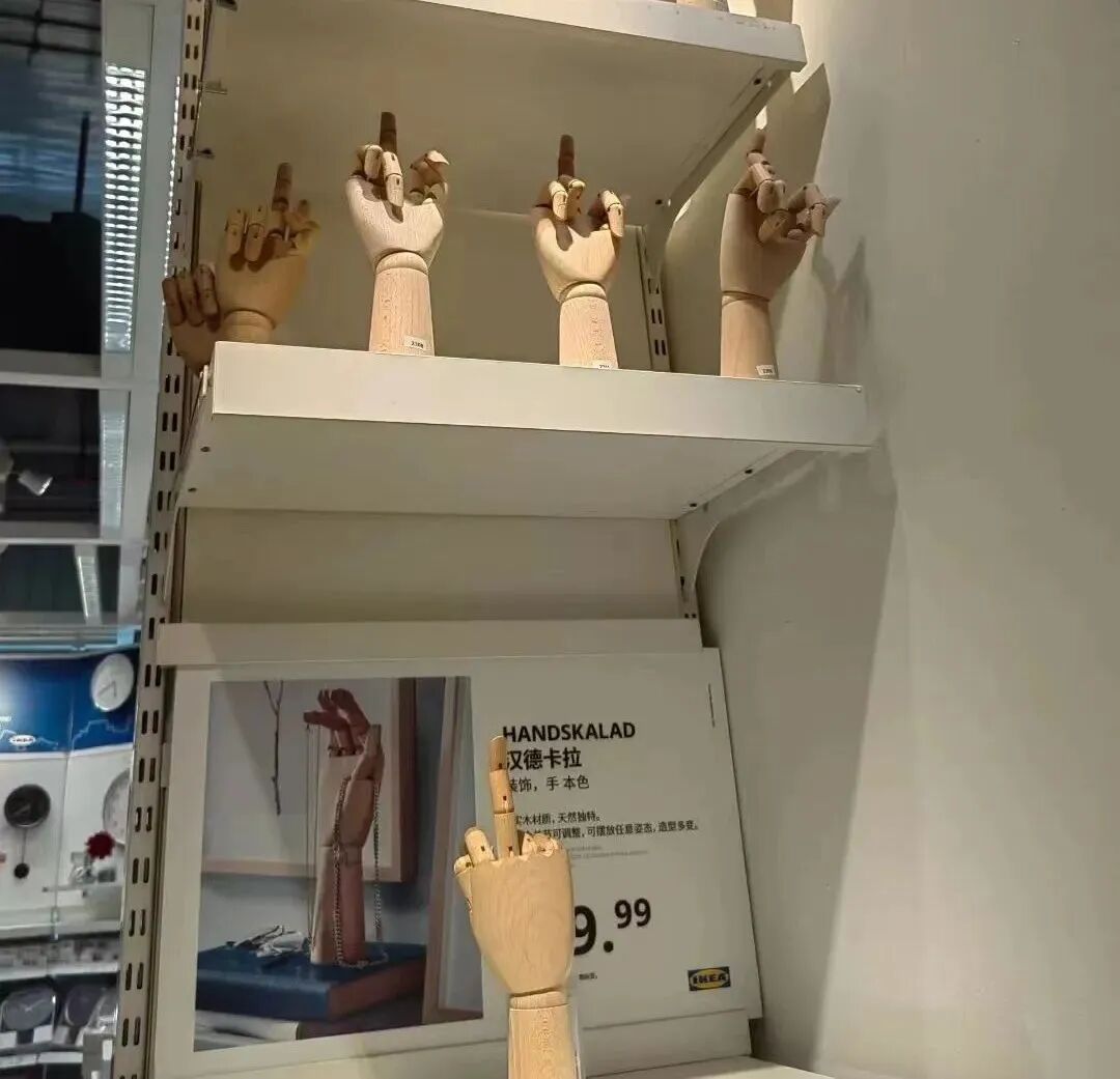 但在世界绝大多数地方的宜家,竖中指却更像是一种代表人类叛逆本能的集体仪式。