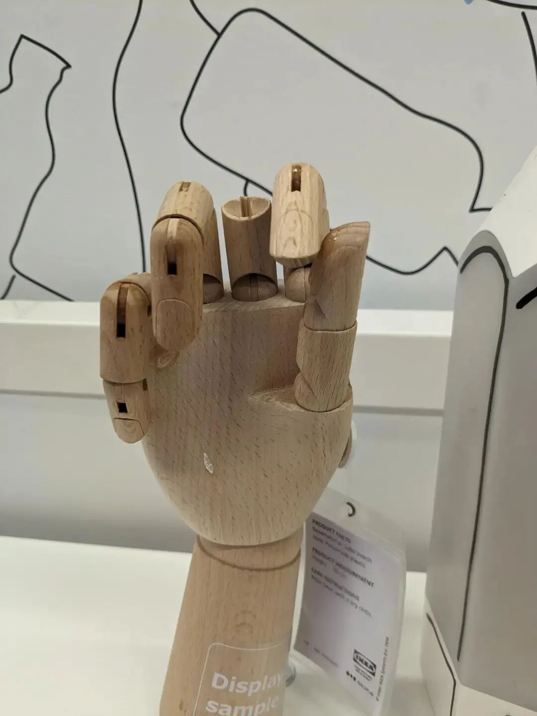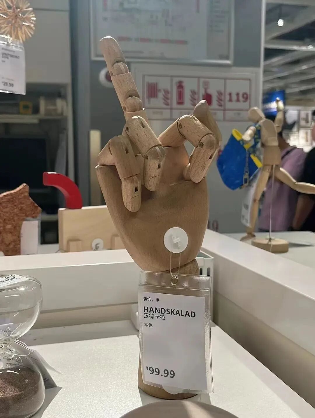宜家的木质手部模型官方名称为“汉德卡拉(HANDSKALAD)”,作为这家家居巨头的拳头产品之一,它已经在世界范围内风靡了多年,并且有了多个版本。