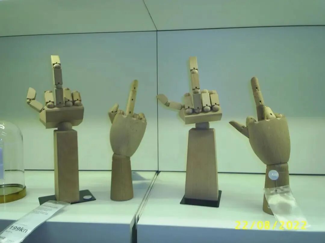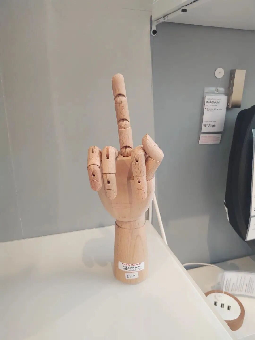 在宜家,竖着中指的木头手是如此之多,多到能让每个初登宝地的人误以为它们的出厂设置即是如此,而其背后的光明会势力正试图借此结阵召唤某种神秘力量。