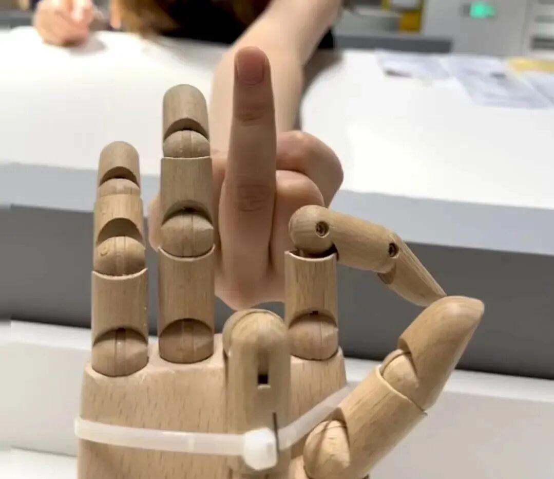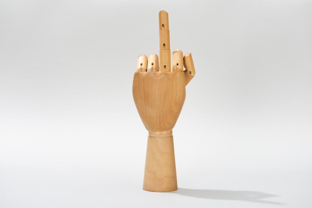 你能想象到每一个把木头手中指掰起来的人,TA可能想表达叛逆、宣泄糟糕的心情,又或者只是想要把身边的人逗乐——好吧,这就是一种下意识的惯性决定。