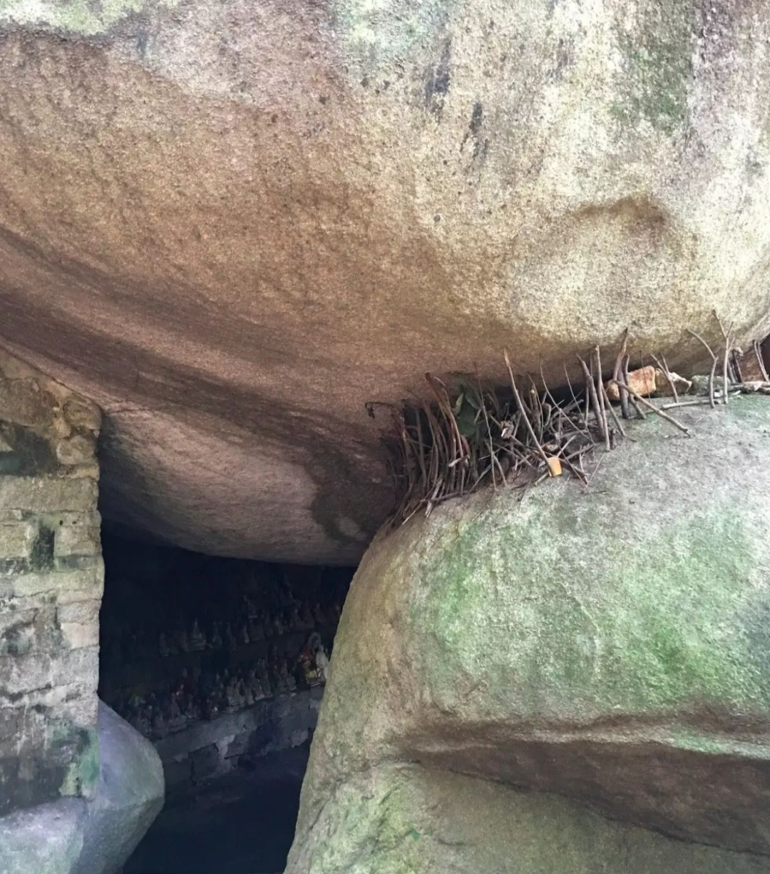 朋友为了避免腰酸,每次徒步路过看到这种岩石缝隙也都会撑一根棍。