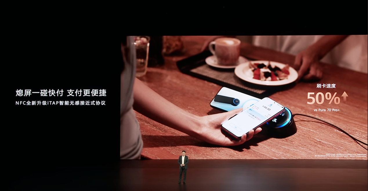 2024年11月,华为Mate 70和X6实现更便捷的“亮屏就能碰”,支付体验大幅提升。