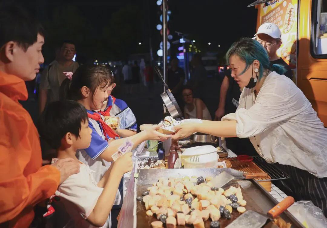 9月14日,小朋友们在选购美食丨新华社记者王翔 摄