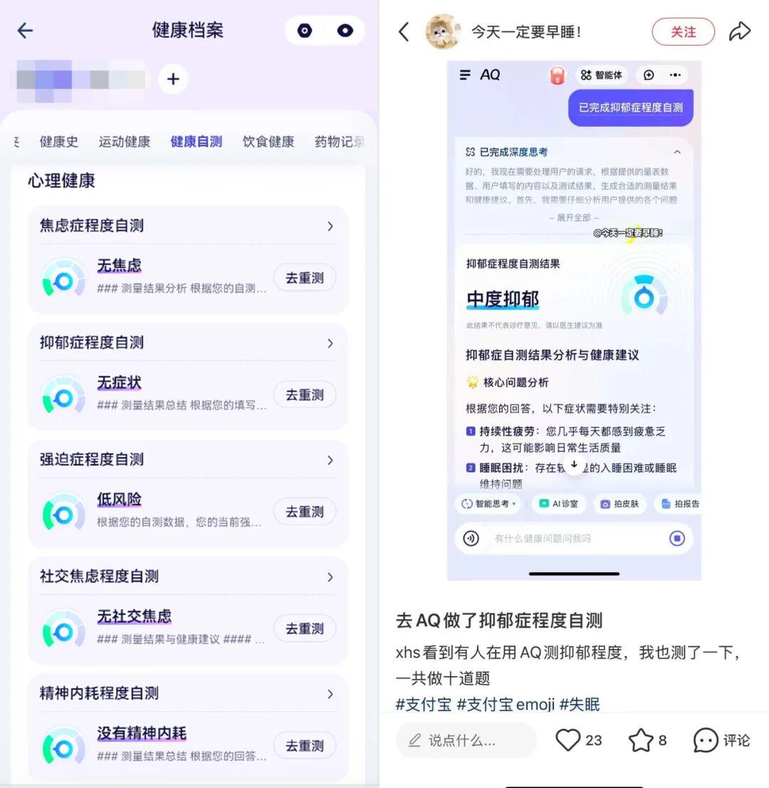 幸运的是,很多人意外看到 AQ 猜题,顺带也参与了附带的“健康自测”,开始学习了解自己和身边人的精神健康。