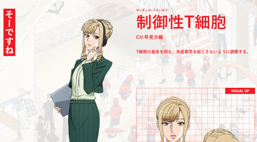 在漫画/动画《工作细胞》中,本次奖项的核心发现调节性T细胞(日语称“制御性T細胞”)被拟人成了一位成熟冷静的美丽大姐姐。