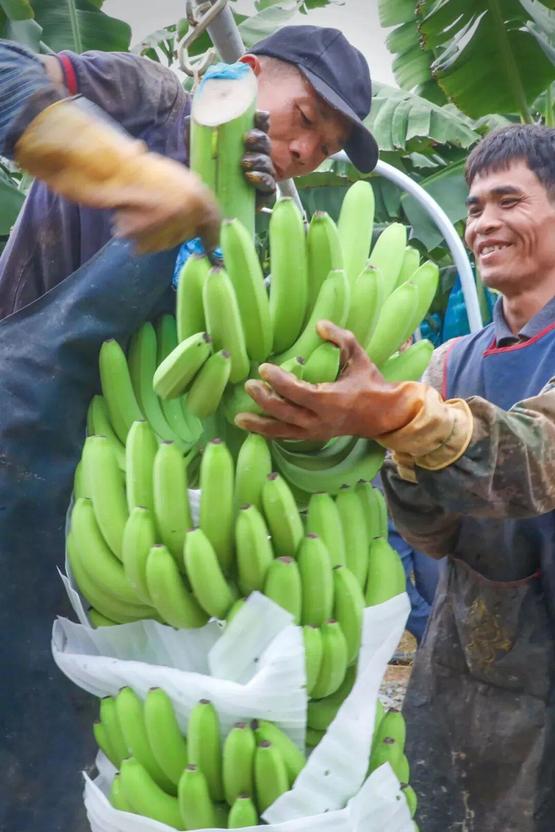 香蕉的采摘很需要力气,这一串很重丨摄影/韦革宁