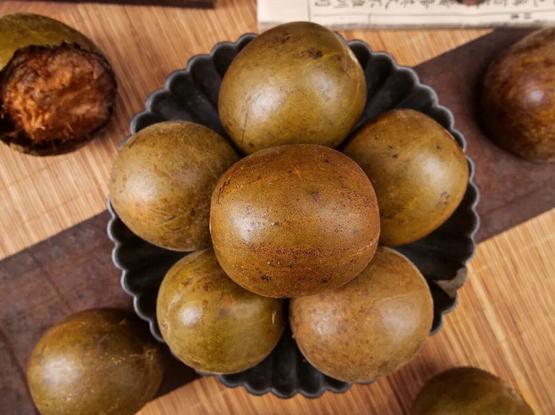 罗汉果也是水果,没想到吧?而且,广西不仅是原产地之一,也是最大的产区,桂林县市多有种植。罗汉果鲜果不易保存,常见的都是罗汉果干,此时,它也成了一种药材。这种水果非常非常甜,从它提取的罗汉果糖甙,甜度甚至是蔗糖的300倍,还没啥热量,是纯天然的代糖物质。
