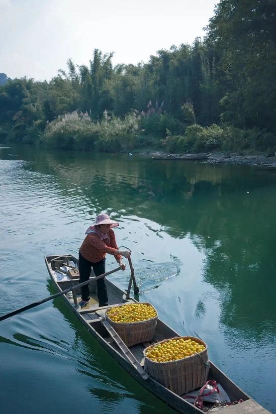 果农用小船来运输采摘后的融安金桔,很广西的运输方式。摄影/杨天鑫