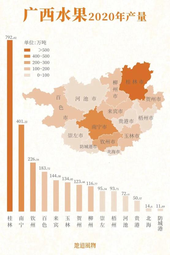 2020年广西水果产量,桂林第一,南宁第二丨制图/孙璐