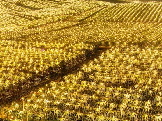 南宁是全国火龙果的最大产地。当你晚上在南宁附近的邕江河谷中,远远看到农田里一片灯火通明,千万不要惊讶!那是成群结队的火龙果在享受“灯光浴”。人们利用植物补光灯,让火龙果在晚上也能“充电”,更好地进行光合作用,提高产量。
