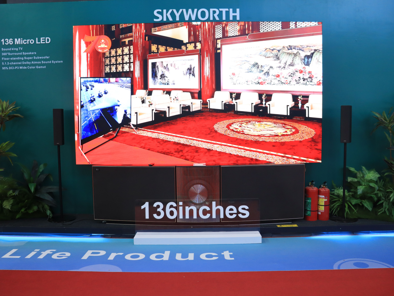 面向商用领域,创维首台AI智能体多场景LED超级电视——“创维影音王座”136吋Micro LED也重磅亮相,能够覆盖会议、教育、文旅等多元场景。