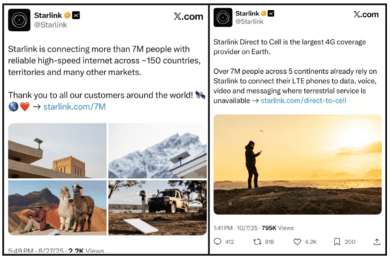 星链宣布终端用户超700万,还有700万手机直连用户 | 星链官X截图