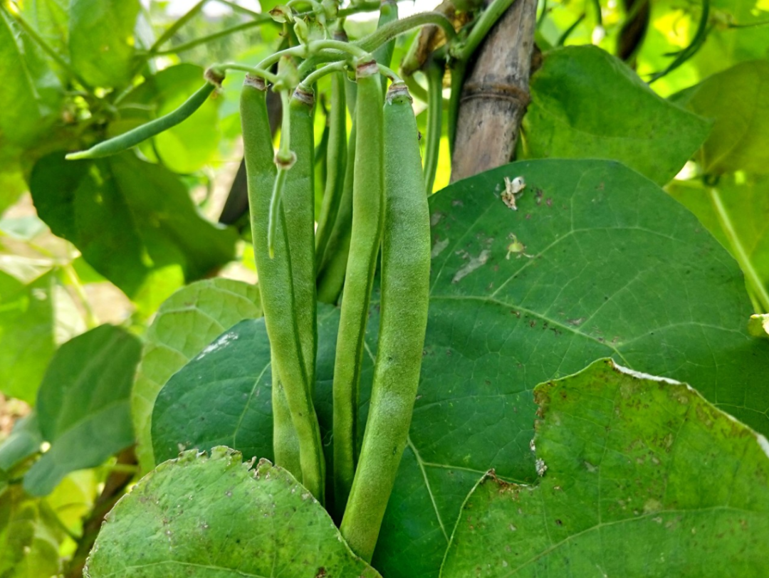 “豆荚双生”是分辨四季豆的一个重要特点,通常两两相对长在枝条上。