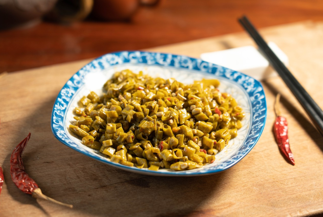豇豆也能入泡菜坛发酵,从鲜绿变得暗黄,乳酸菌的作用使它的味道更为丰富,既可以直接拿来下白粥,也能切碎了变身为螺蛳粉、湖南米粉的灵魂配菜。