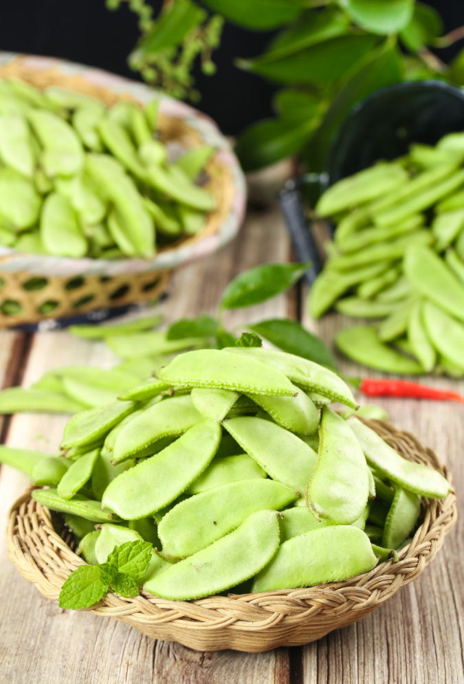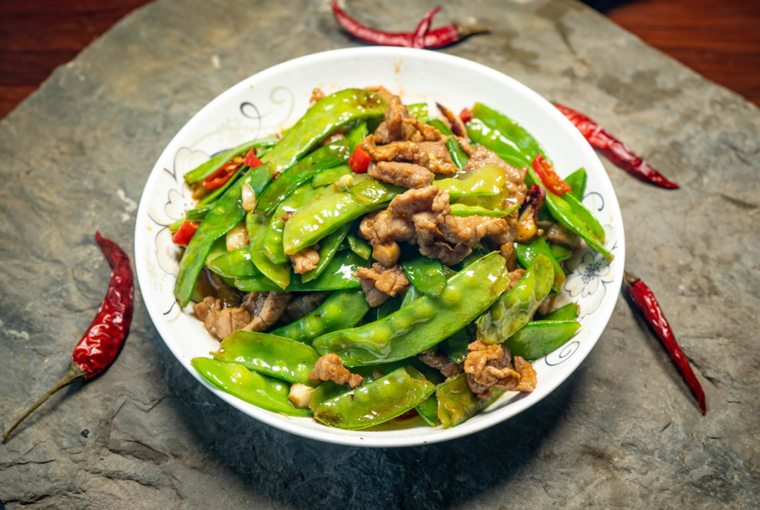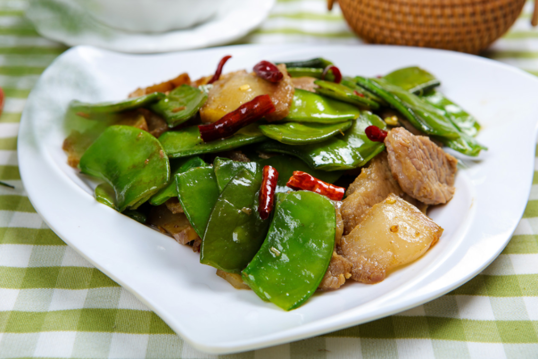 餐桌上的“豆角家族”里,还时常可见一种颜色碧绿、嚼起来脆脆的“荷兰豆”,扁平程度和扁豆略微相似,炒之前也要撕掉两边的筋,但比扁豆要窄,豆粒格外细小。这种豆角并不是来自荷兰的扁豆或是四季豆,而是欧洲培育的豆粒高度退化的食荚豌豆,在清代传入我国,得到“角粒脆嫩,清香可餐”的赞誉。