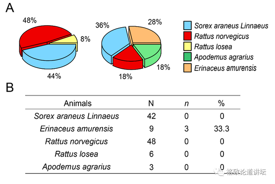 后来我们就在最严重的岱山岛和没有病例的秀山岛做野生动物调查。我们发现主要的动物是啮齿类,还有鼩鼱类那些,但是岱山岛我们额外还逮了9只刺猬,秀山岛是没有的。而且这9只刺猬里面有1/3的血清有发热伴病毒抗体,呈阳性。而其他啮齿类、鼩鼱类都是没有的。那么我们就怀疑,可能刺猬就是病毒的宿主。