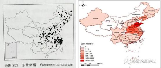 我们来看,东北刺猬的分布跟右面病例的分布,就是那个深色的区域,是不是基本上吻合?