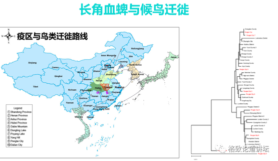 我们可以看到这个地图,主要的疫区实际上都在东亚-澳大利西亚的鸟类迁徙通道上,所以说它们可以通过鸟的迁徙来扩散。