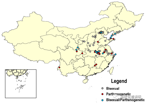 孤雌种群最先是在日本北部发现的,咱们国家实际上只在少数地区像甘肃、四川、上海有过报道,另外在美国、新西兰这些地方发现的全都是孤雌的。