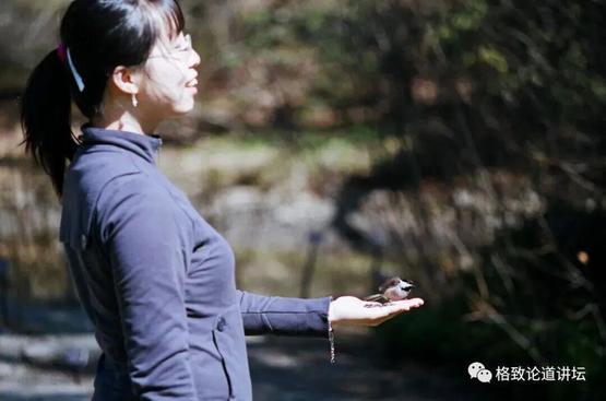我大概15年前在美国工作学习过一段时间,当时我非常羡慕当地的生态环境,野生动物很多,人和动物之间距离也非常近。像我们经常去小公园喂小鸟,在手里面放几颗瓜子,小鸟就会到你手里来吃瓜子。大家可以看到照片里的这种小鸟,很漂亮,叫黑头山雀。