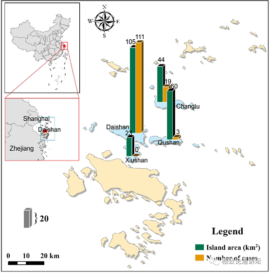 我们的故事开始于浙江省舟山市一个叫岱山县的群岛,这个地方是浙江发热伴最严重的地方。我们去调查的时候跟当地疾控的同志们交流,发现有一个岛叫秀山岛,它的植被、人口密度跟周边的岛基本上一样,但是它就没有病例,所以以前的专家都没有去过这个岛。