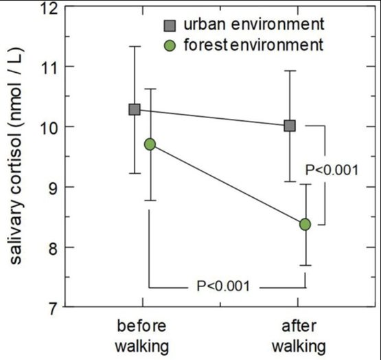 [5] Kobayashi H, Song C, Ikei H, Park BJ, Kagawa T, Miyazaki Y. Combined Effect of Walking and Forest Environment on Salivary Cortisol Concentration. Front Public Health. 2019 Dec 12;7:376.