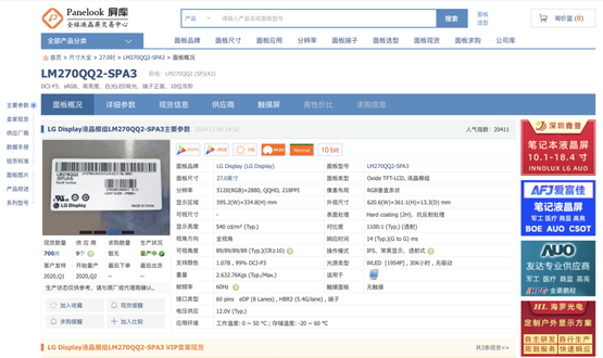邪修路子用此前提到的 LG LM270QQ2 为例。