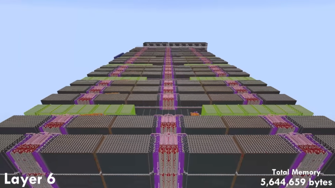 事情是这样的:Sammyuri团队在外部训练好了模型,把神经网络的计算图翻译成红石电路,使用了4.39亿个方块,把五百万参数的模型的各个成分导入了Minecraft中,直接用红石电路硬编码了神经网络。