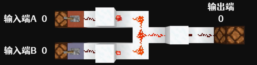 红石是Minecraft里的矿物,可以理解为一种兼具了导体和移动电源功能的资源,在红石之外还有不少配套的组件,比如开关、按钮、压力板等。通过开关的通断,红石电路可以在游戏中模拟二进制的0或1,从而构建出基础的三种逻辑门。