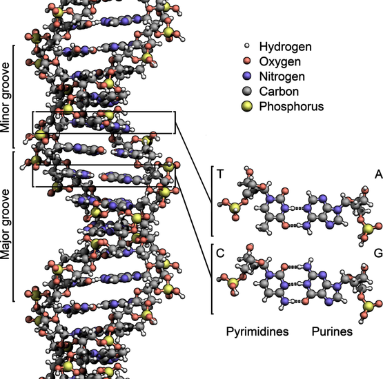 沃森探索DNA结构受物理学家薛定谔影响,而合作伙伴克里克是物理学出身,由此来看,物理思维对DNA结构问题的解决具有重要影响。按照物理学及物理化学的观点,成对电子最稳定(DNA双链与碱基配对);根据泡利不相容原理,成对电子方向必须相反(DNA两条链方向相反);物理学定律大多符合右手定则,而DNA也为右手双螺旋。在这些原理基础上并结合实验数据,沃森和克里克最终提出DNA双螺旋的结构:DNA是一种由两条方向相反的DNA单链构成、内部存在碱基配对(A与T,G与C)的右手(right)双螺旋分子。
