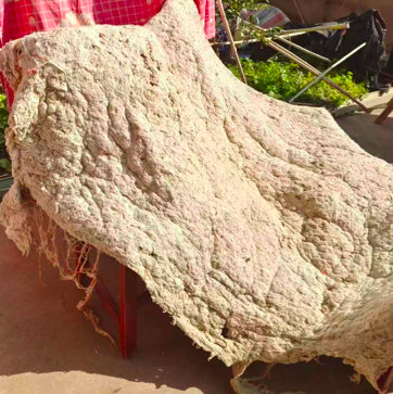 湖北网友晒出外公用了58年的棉花被。有一说一,这种形态的被子吸水又不存气,使用体验应该很不好了。丨小红书/半口豆沙920