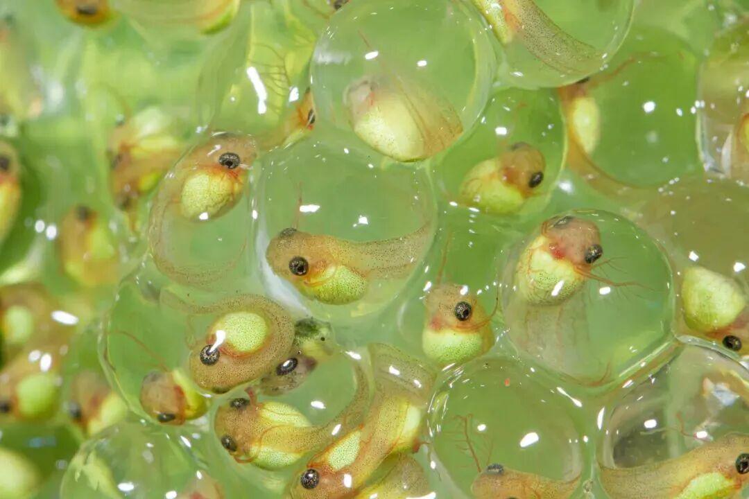 直到2016年,科学家从水底的泥沙,才挖出了小跳蛙的蝌蚪。它们身体细长,缺乏色素,眼睛退化为黑点,藏在皮肤下面,长着一身隆起的肌肉。当人们把这些蝌蚪放回到水里,它们立即像鳗鱼一样扭动身体,快速钻入沙床中。