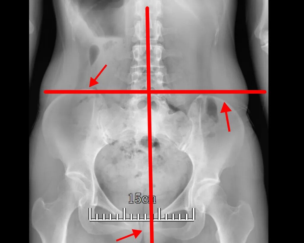 拍了片子一看,腰椎有些小毛病但并不严重,可让我吃惊的是,骨盆竟然是歪的。医生也看了、摸了我的腰部肌肉,作为检查的一部分。