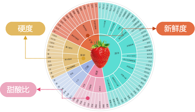 在农业生产中,如何衡量农作物产品的市场价值,是一个比较复杂的问题。例如下图是农业公司先正达给出的草莓在消费市场上需要考量的问题,包括了外观、气味、质地、口感、滋味等多个方面。