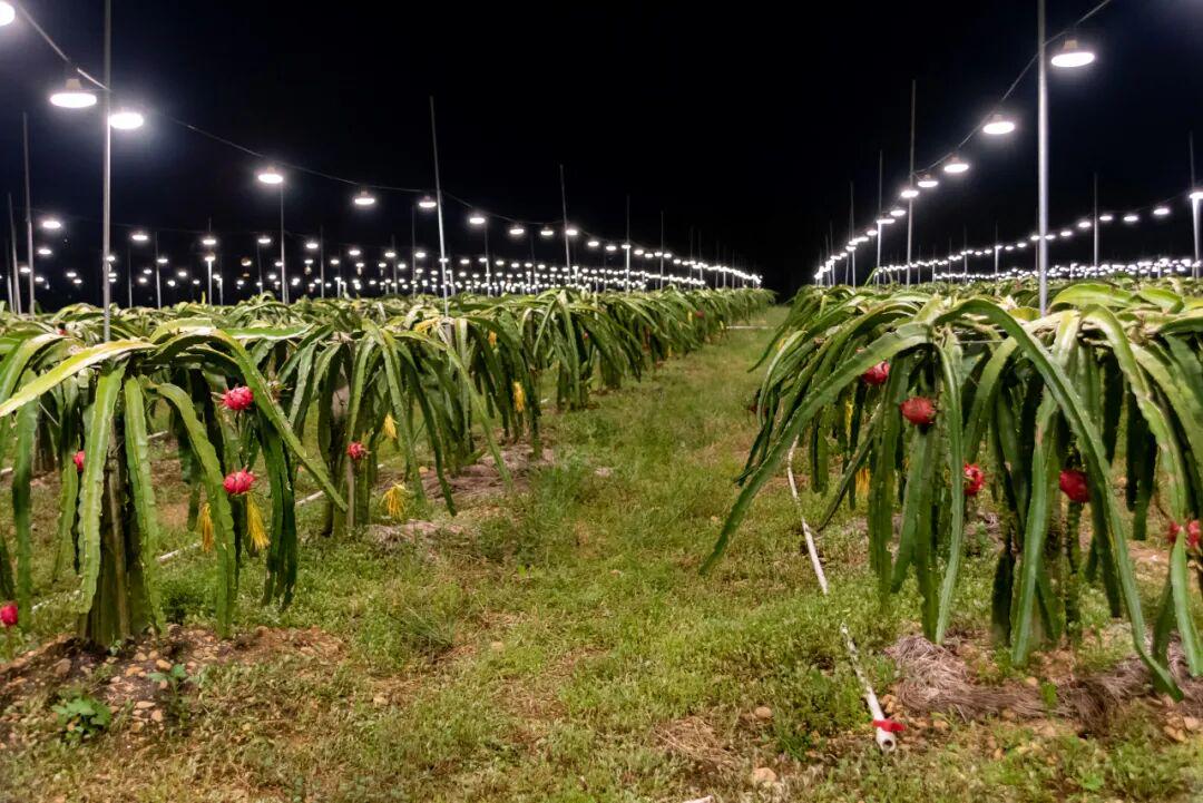 骗火龙果也有大讲究火龙果原产于中美洲沙漠地区,喜光喜热,植株需要充分沐浴在每天长达12小时光照之下才能顺利开花结果[1]。因此,灯光的信号能让每一株火龙果都能开启清醒模式。目前的应用型研究发现,通过冷光LED灯模拟日光的方式,能够有效提前引导火龙果开花、延长开花周期,以达成火龙果的稳定供应。