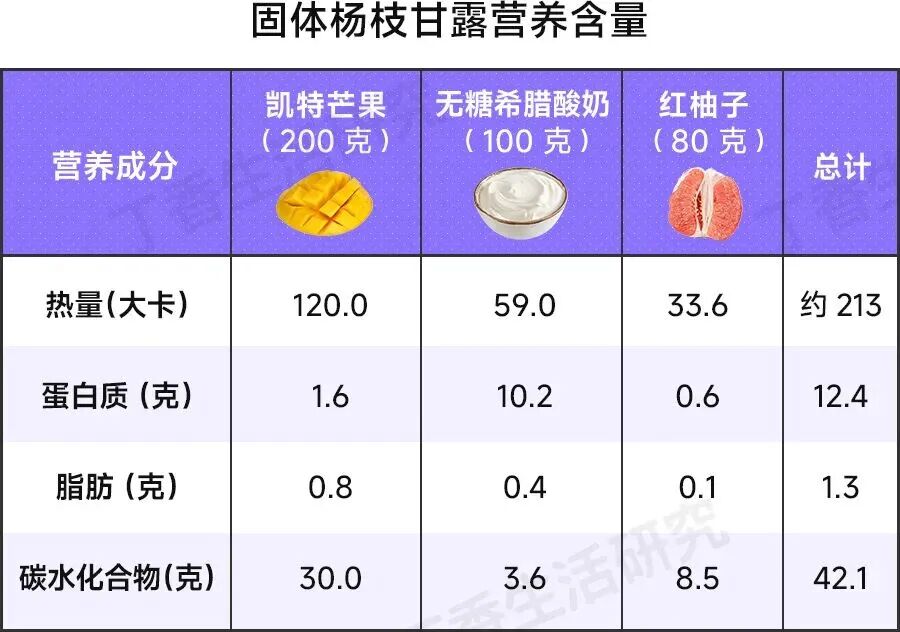 热量低、升糖慢,解决吃甜品担心胖的痛点研究员们计算了一下,一份固体杨枝甘露,大概只有 200 多千卡的热量,也就比 300 毫升牛奶(大约 180 千卡)多一点,而且饱腹感相当不错。