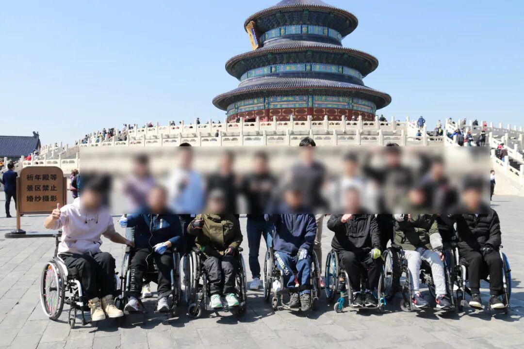 比起技能的提升,我觉得更重要的是走出去的第一步,上了几天课,有个大哥提议我们请假去玩一天,他有C5驾照。我们坐车的坐车,坐地铁的坐地铁,8个轮椅相伴,居然真的在天坛公园美美玩了一天,我们实战了课程中学习的《轮椅在不同路面的操作技巧》,但在天坛祈年殿拍照,要上去一个很大的坡,我们轮椅的动力是上不去的,还没等我们求助,就有一群萍水相逢的人不约而同推我们上去了,最后我们还一起合了一张影。从那之后,所有向外的通道都非常自然而然地敞开了,我在老师的帮助下定制了更好用的辅具、一个人踏上回家的旅程、一个人出门去面基网友……