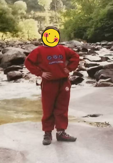 最后一张站着拍的照片里,我穿着一身红色的运动服,站着丁字步双手插兜,一脸神气。