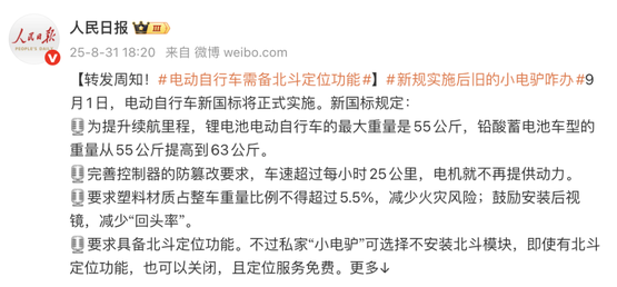 新国标《电动自行车安全技术规范》在2025年9月1日正式生效,老国标电动自行车正式停产;而在12月1日之后,市场上销售的所有电动自行车都必须符合新国标要求。