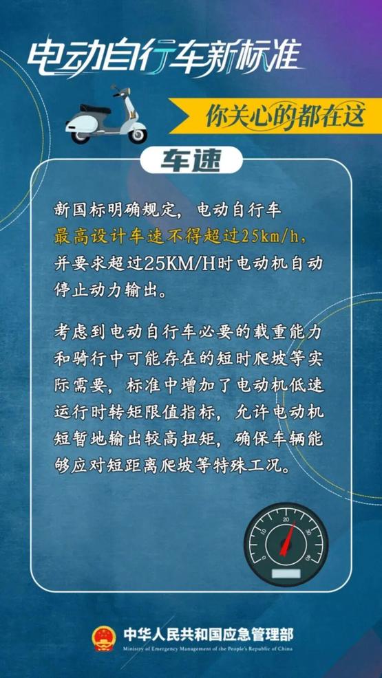 新国标要求电动自行车最高设计车速不得超过25km/h,否则会直接停止动力输出。另外,新国标还从电池组、控制器、限速器三管齐下,做出防篡改要求;并增加了北斗定位和通信模块,将会对车辆的位置、速度等信息进行动态安全监测。相当于从方方面面堵死了电动车超速的可能。