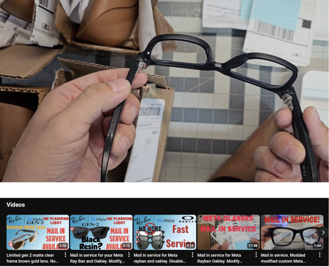 但这并没有阻止 Kim 继续接单,改造那些已经出厂的 Meta 眼镜。