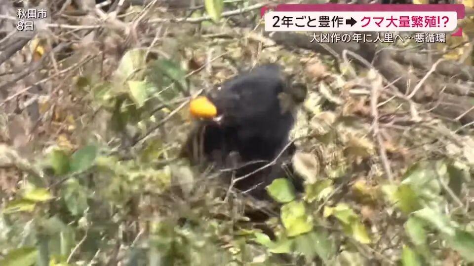 北海道最近30年的平均气温上升了大约2.4摄氏度,导致熊的冬眠时间缩短。恰好今年秋天,熊爱吃的山毛榉和白橡木在青森、岩手、宫城、秋田、山形5县都严重歉收,熊在入冬前怎么吃都吃不饱,饿极了被逼无奈,又热得没法冬眠,只好跑到人类聚集区觅食,开始翻找垃圾桶、啃食猫粮狗粮,爬上树吃人类种的水果,甚至闯进车库、储藏室和超市寻找食物。