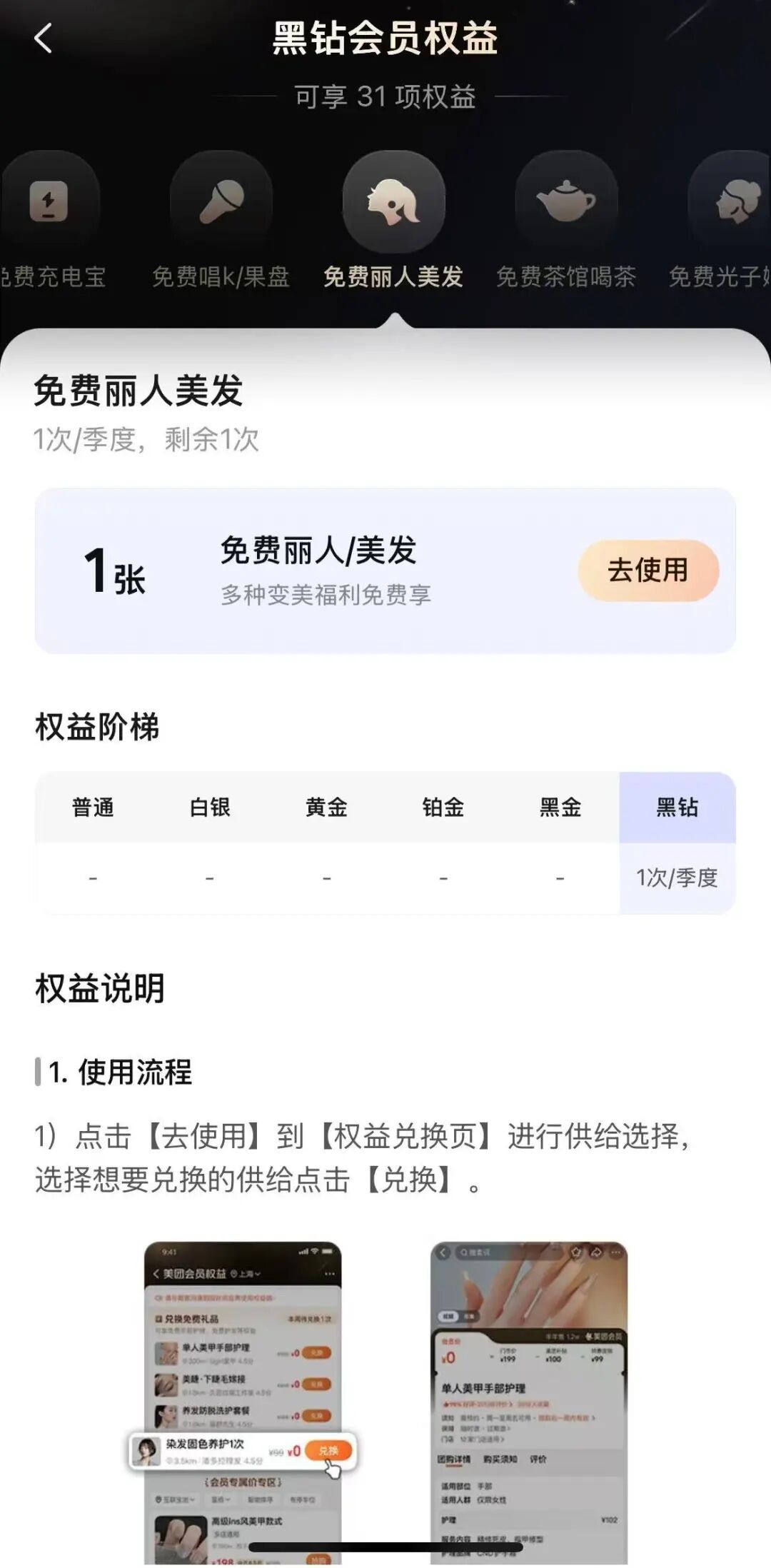 这里汇聚了全平台为黑金黑钻会员准备的专属优惠,覆盖你生活的方方面面: