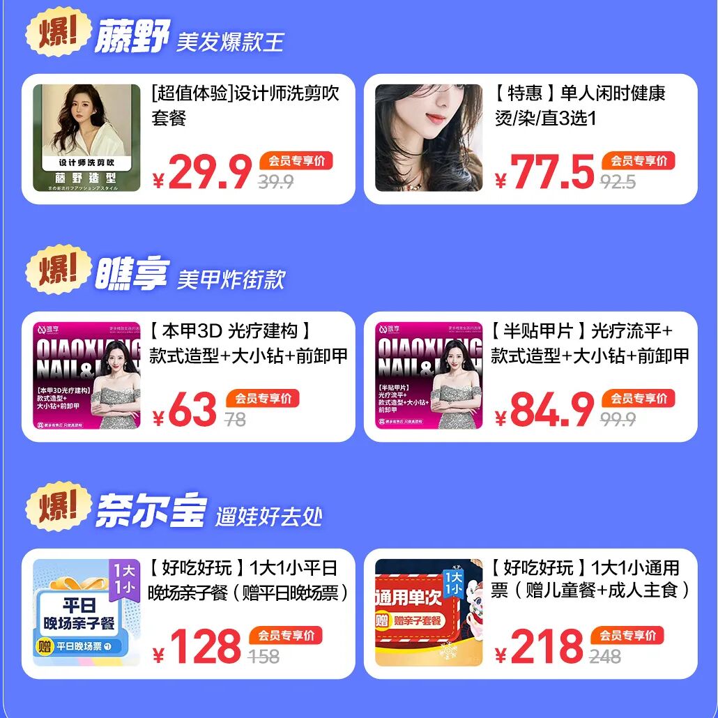 年底聚会:小酒馆、轰趴馆、KTV超值优惠。休闲娱乐:洗浴中心、亲子乐园、健康理疗专属折扣。变美焕新:美发、美甲会员专享价,部分项目最高立减30%每一次搜索,都可能为你节省一笔不小的开销。为保障会员品质,美团还联合行业六大休闲生活头部品牌——水裹汤泉、奈尔宝、星聚会KTV、藤野造型、郑远元、瞧享美甲为会员用户打造愉悦生活选择用会员价,享受不打折的品质。
