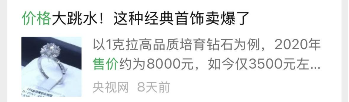 过去,一克拉欧美大牌钻石标价十万元几乎是行业常态。而近期,央-视-网的一则报道引发了热议:一克拉高品质国产钻石,2020年售价约8000元,如今已降至3500元左右。