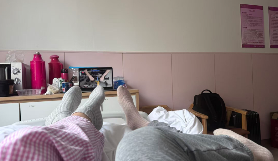 完成了早晨的检查,我被批准由ICU转入了双人间,还可以有一位家属陪护。跟我分到一间的是昨晚一起住在ICU的双胞胎准妈妈,也是 37 周,入院等待剖宫产。这也算是个熟人局了,小夫妻俩是山东+黑龙江组合,一起住的时光可以说是非常欢乐了。