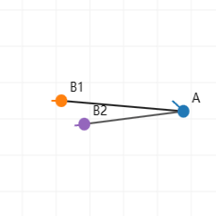 橙色猎手B1采用提前量追击,紫色猎手B2采用纯追击,共同追逐目标蓝色猎物A。由于预判了猎物的走位,橙色猎手B1少走了很多弯路,最终先于紫色猎手B2抓到猎物。