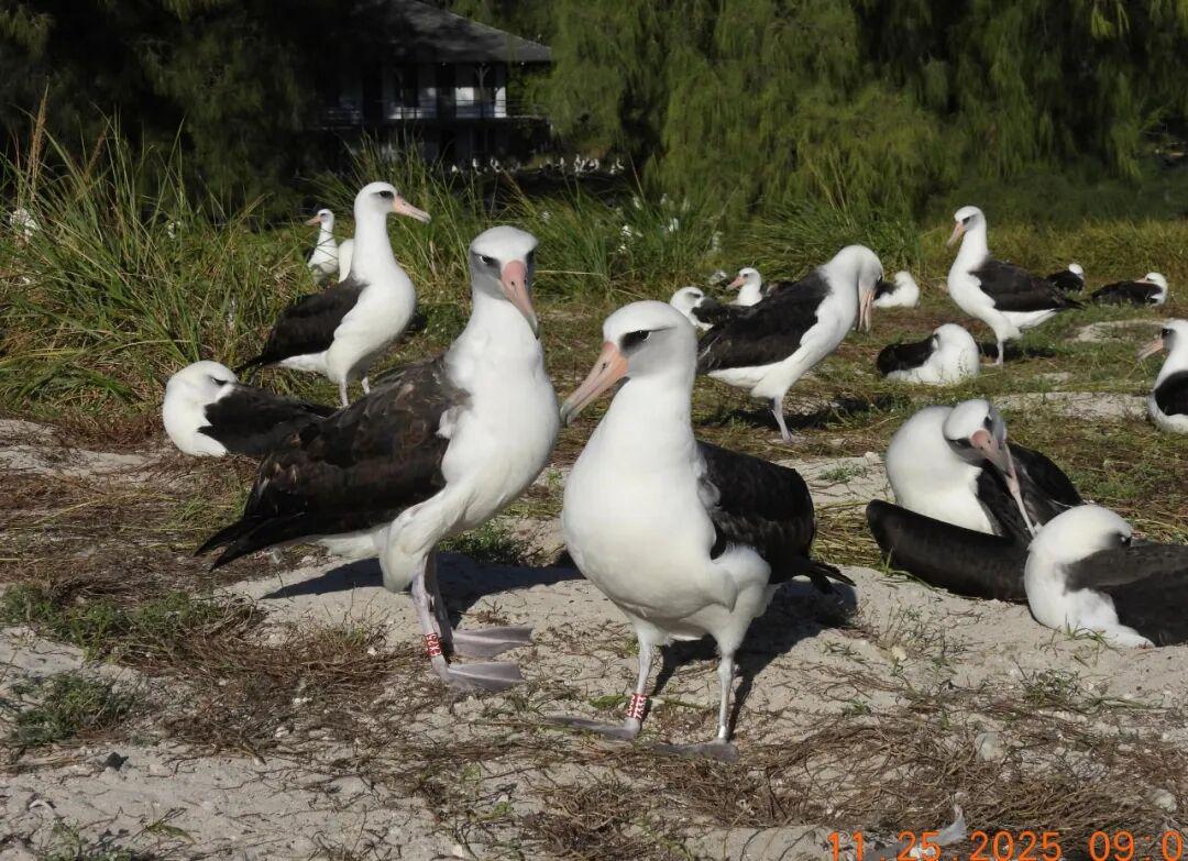 2021年2月拍到的“智慧”,脚上带着红色的“Z333”脚环|Jon Brack / Friends of Midway Atoll