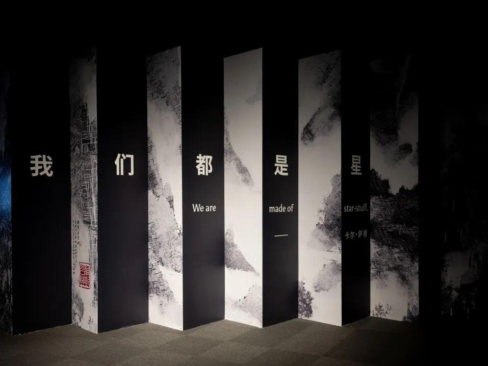 因为星星就在那里“除去‘万籁寂’,我个人最喜欢的一件展品是维斯台登纹拼接的中国山水画折叠墙。”上海科技馆天文研究中心陨石研究室主任杜芝茂介绍到:“这个展品正面是山水画,看完了转过来,背面是卡尔萨根的名言‘我们都是星尘’。大家走到这个位置看完后,认知会上升到哲学的高度。”