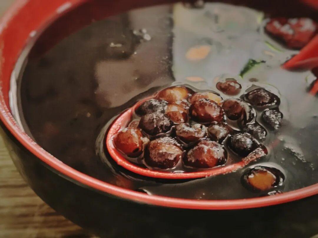 掌勺人舀起一勺黏稠敦实的灰豆子,倒进砂碗里,那颜色沉稳、质地厚实,像冬天的安慰。最妙的是它的温度,不烫嘴、不凉牙,温温吞吞地刚刚好,是让人愿意一口接一口的暖度。